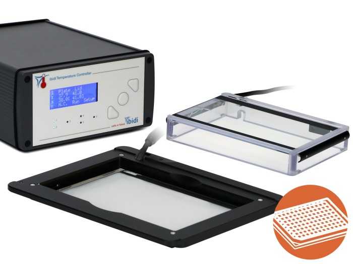 ibidi Heating System Multiwell Plate – Silver Line: ibidi Temperature Controller–Silver Line, Incubation Chamber Multiwell Plate–Silver Line, with Heated Plate with Heated Glass Bottom |