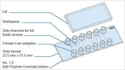 µ-Slide組織工程微流控載玻片專為需要模擬真實組織環(huán)境和流體控制的高級2D和3D細(xì)胞培養(yǎng)實驗而設(shè)計,例如: