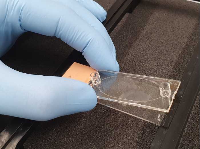 Sticky-Slide Tissue組織切片通道載玻片提供了一個簡單、便捷的工作流程,可在載玻片安裝的組織切片上創(chuàng)建一個節(jié)省空間的通道。在對組織進行脫石蠟處理和再水化后,取下襯底并將粘性載玻片放在顯微載玻片上,即可為組織切片創(chuàng)建一個方便的染色室。